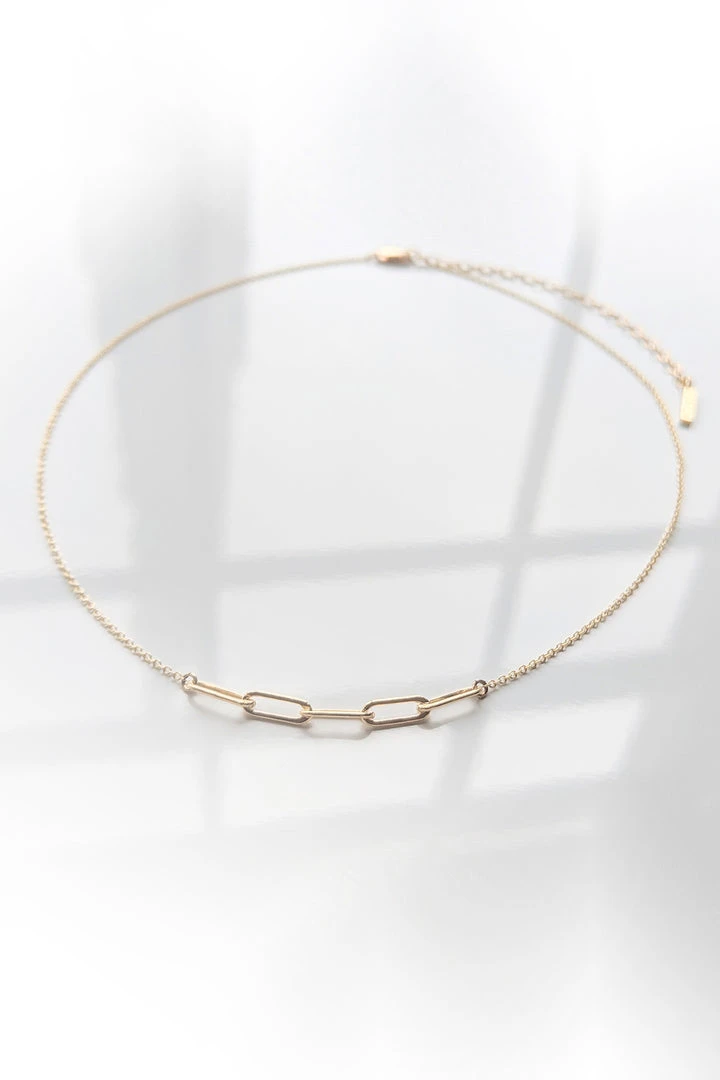 The perfect gold, everyday piece. Crafted from a gold-fill cable chain that is enhanced with six elongated chain links that sit perfectly at the nape of the neck. Great for layering or solo.
