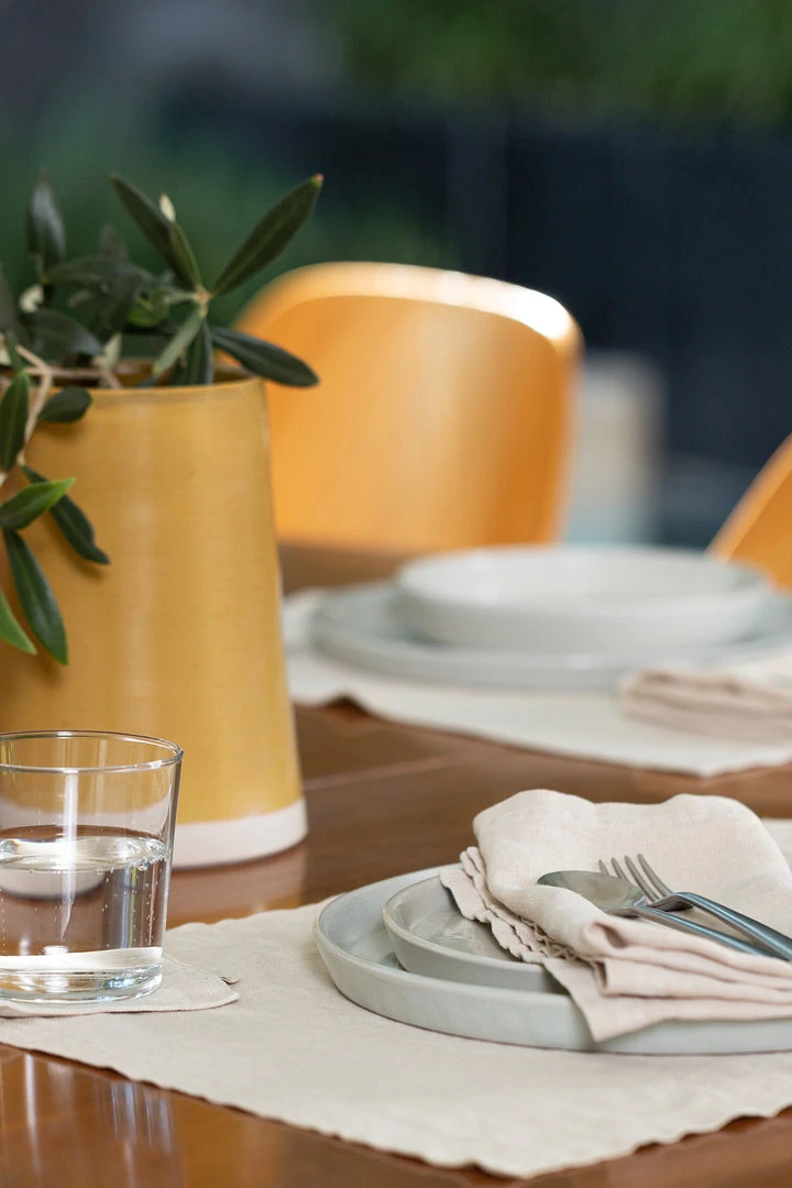 Luxe linen with a soft texture, these coasters are perfect for soaking up moisture from a chilled tumbler or avoiding drips with your morning coffee. Keep a short stack on the table at all times.