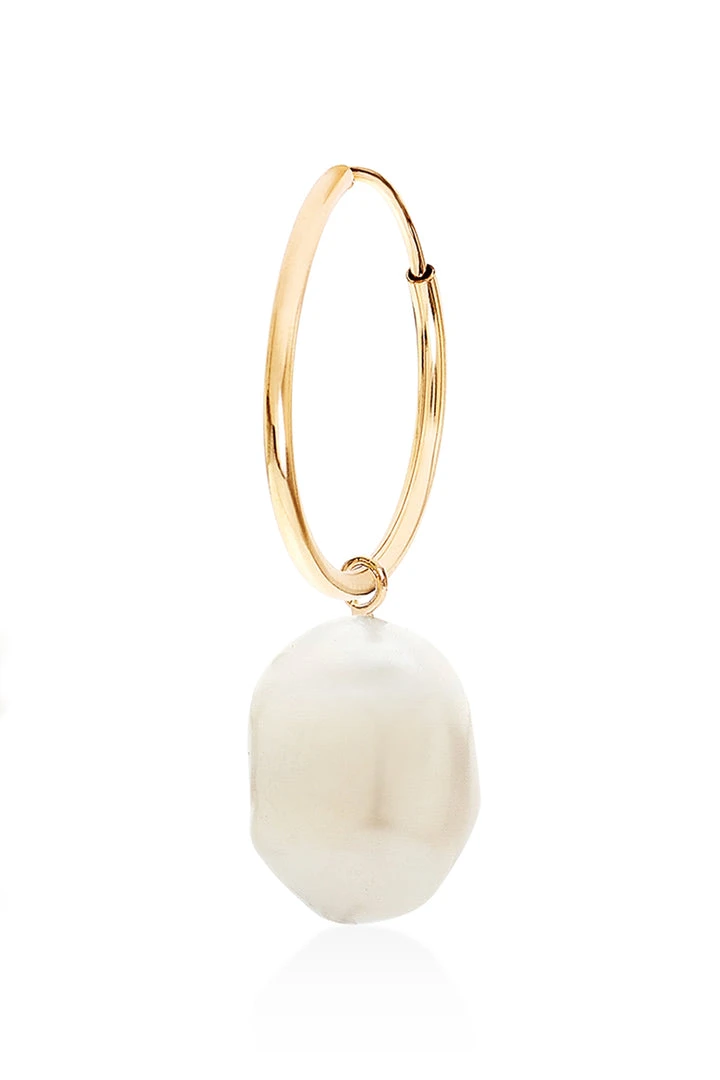 The big drop. Handcrafted in the big apple these feminine hoops feature a gold-fill loop with a freshwater pearl dangler that can easily be slipped off for a simpler look. Either way, it’s a versatile beauty.