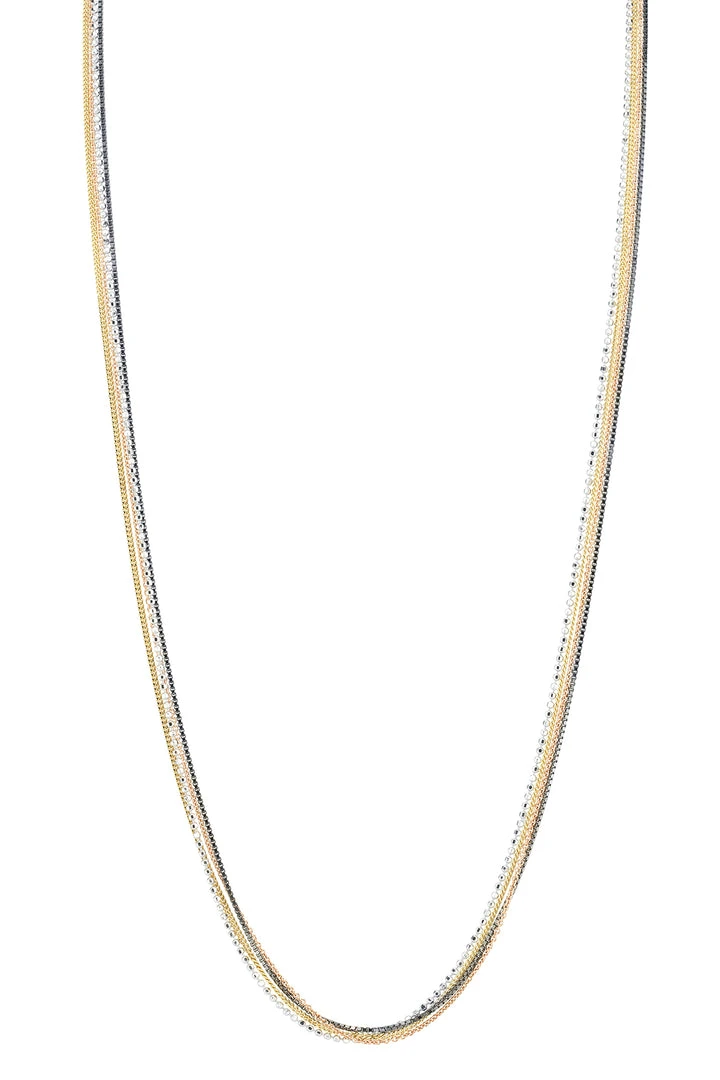 Boogie nights. Add a little disco fever to your accessory arsenal with this understated sparkler. Crafted from multiple gold-fill chains, as well as a chain of tiny cubic zirconia, this is perfect for adding a little sparkle to your décolletage.