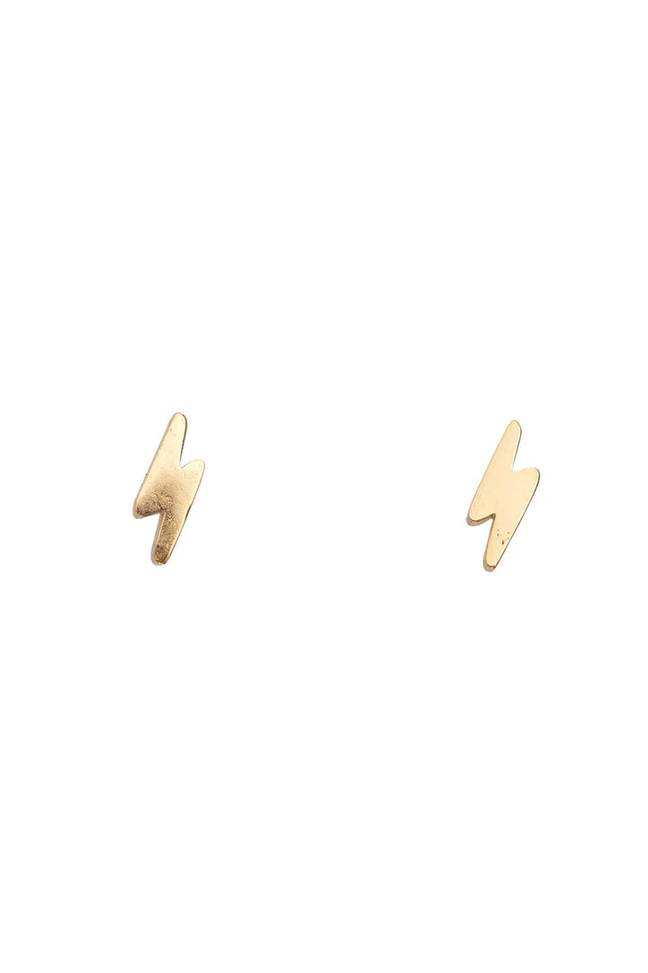 high voltage. they may be small but these lightening bolt earrings pack a big style punch. crafted from 24k gold plate, these small studs will add a hint of urban edge to any look. wear as a pair or just wear one in a second piercing and team it with a cool hoop or other dangler.