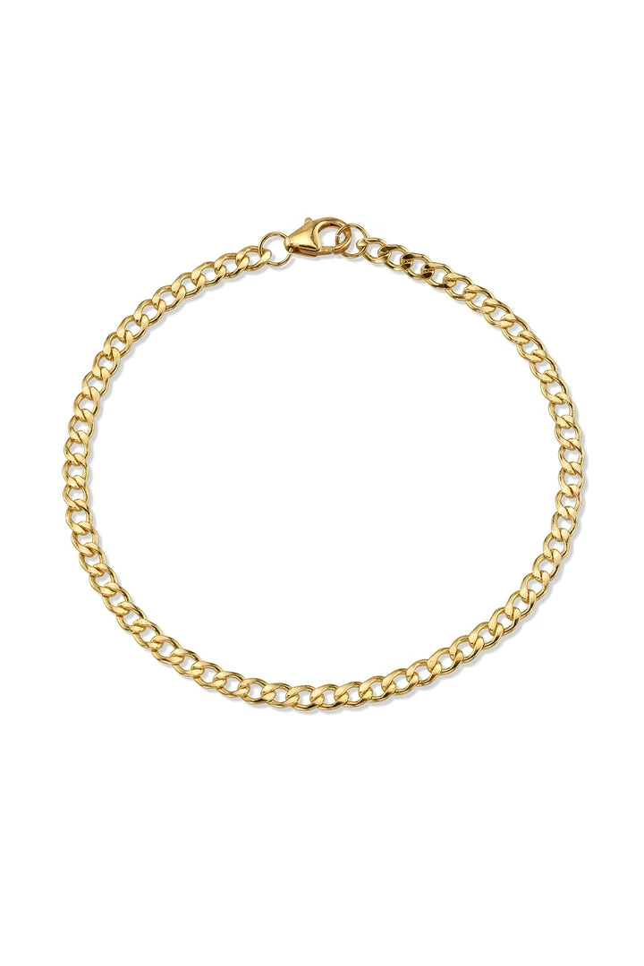 There’s certain accessories that every woman needs in her arsenal and great chain bracelet is one of them. Crafted from a gold-fill curb chain and secured with a lobster clasp, this diminutive wrist dangler is great solo or layered up with a cool cuff.