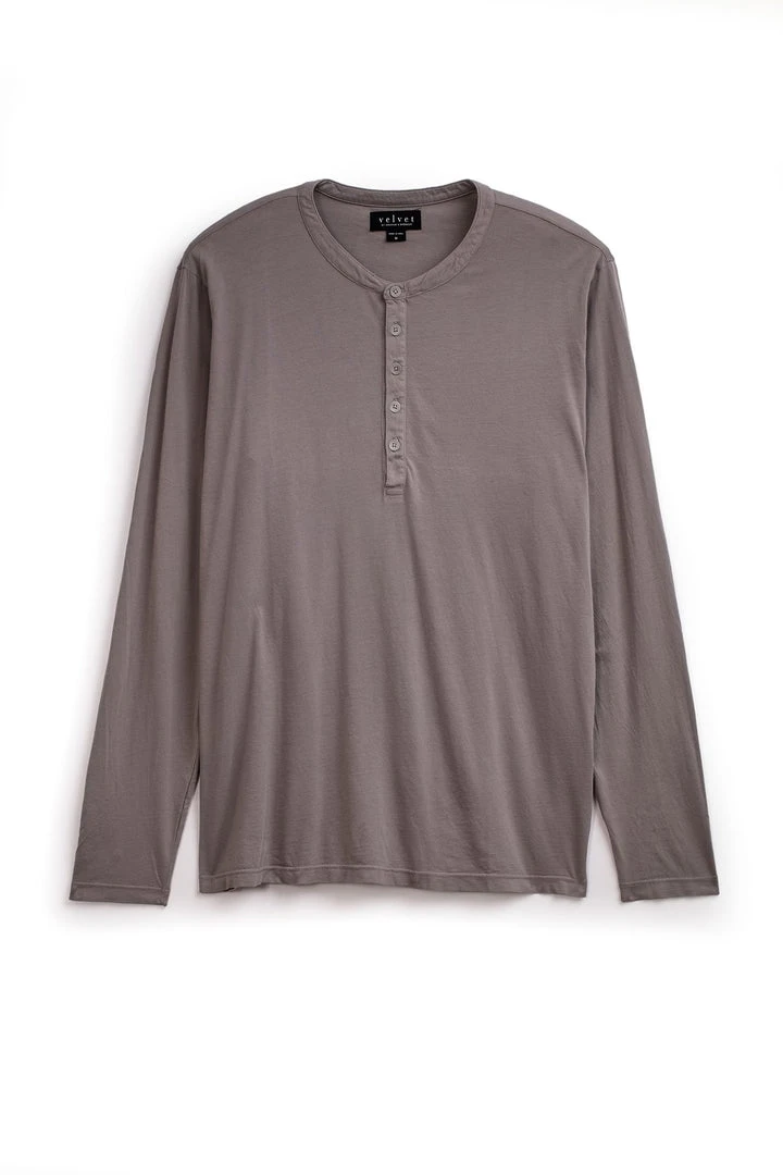 A new classic. crafted from our signature cotton whisper, this henley feels soft and sturdy like an old favorite. With a traditional 5 button neckline, it is great unbuttoned and layered over a contrast tee or just worn solo.