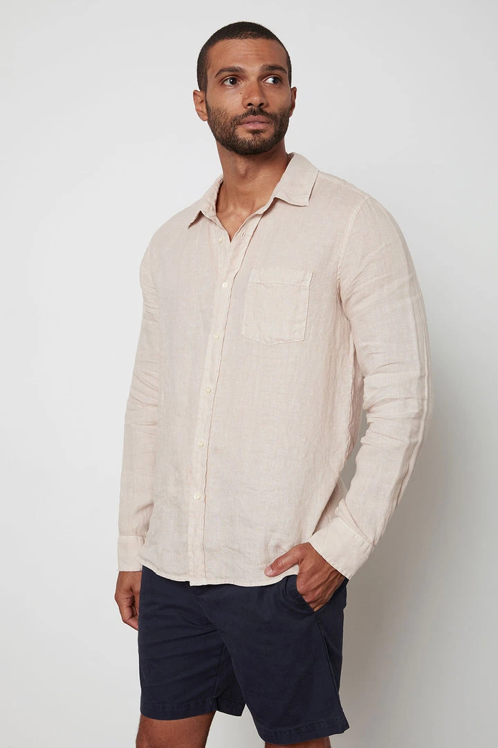 Crafted from a breezy woven linen, this long sleeve button up features a slightly relaxed fit and all the traditional details you know and love.