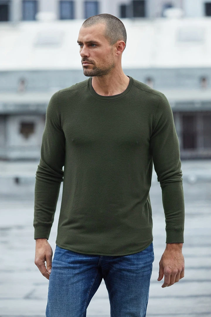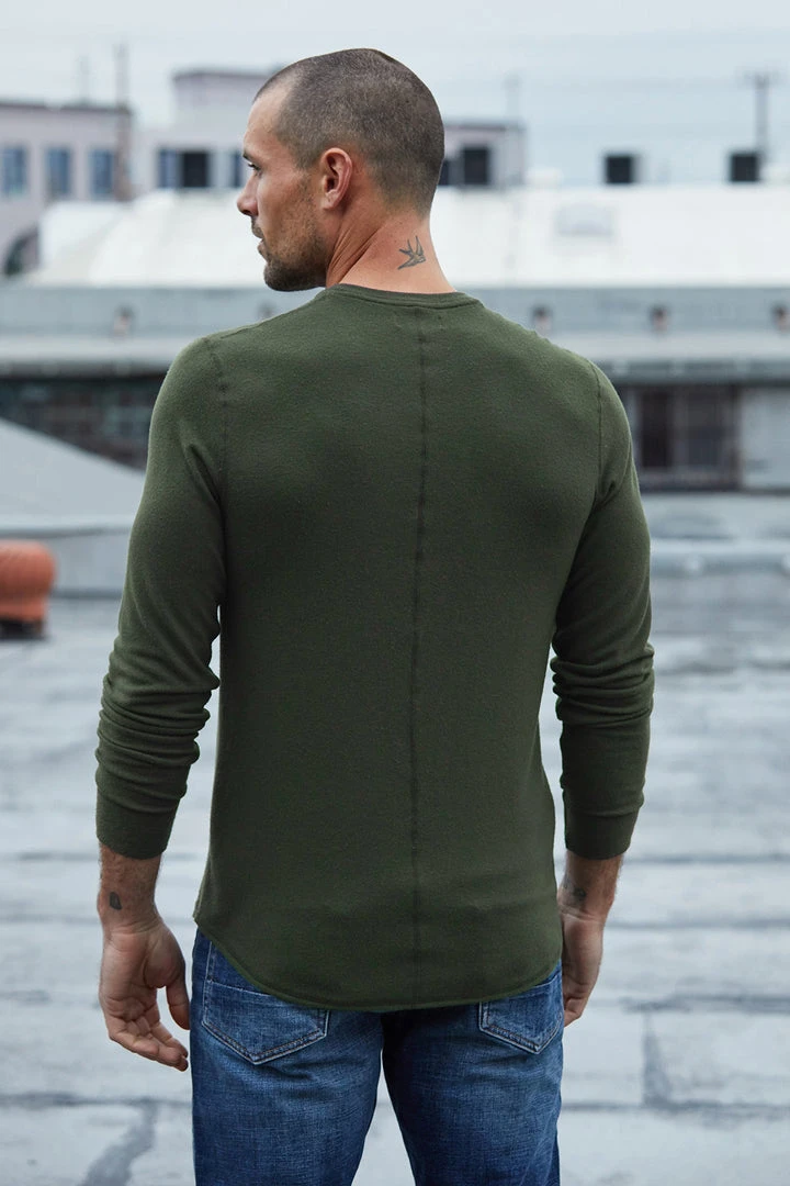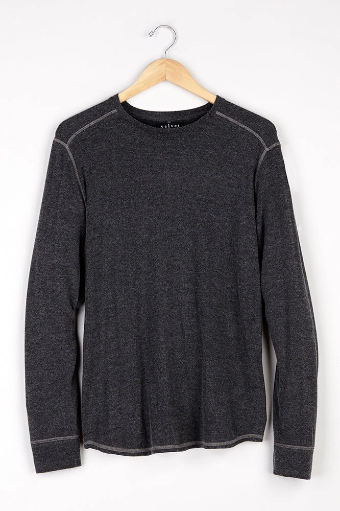 KEEP YOUR OFF-DUTY BASICS LOOKING STYLISH WITH THIS HEATHERED LONG SLEEVE KNIT TOP. THE FABRIC IS SUPER SOFT AGAINST THE SKIN AND THE BEST LAYERING WEIGHT. CHECK OUT THE ENGINEERED TUBULAR STITCHING ON THE SEAMS AND THE VISIBLE SEAM DOWN THE BACK.