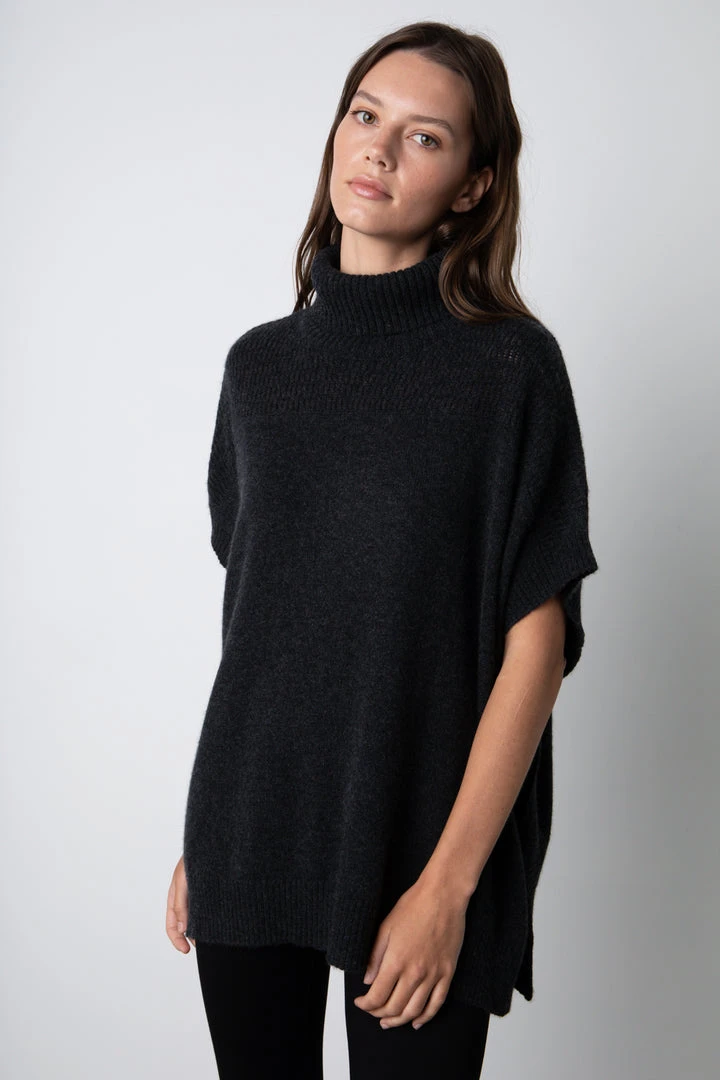 An effortless silhouette designed after a classic poncho, this medium-weight cashmere knit has clean lines and a gorgeous drape. A cozy roll-neck and decorative stitch-work across the shoulders.