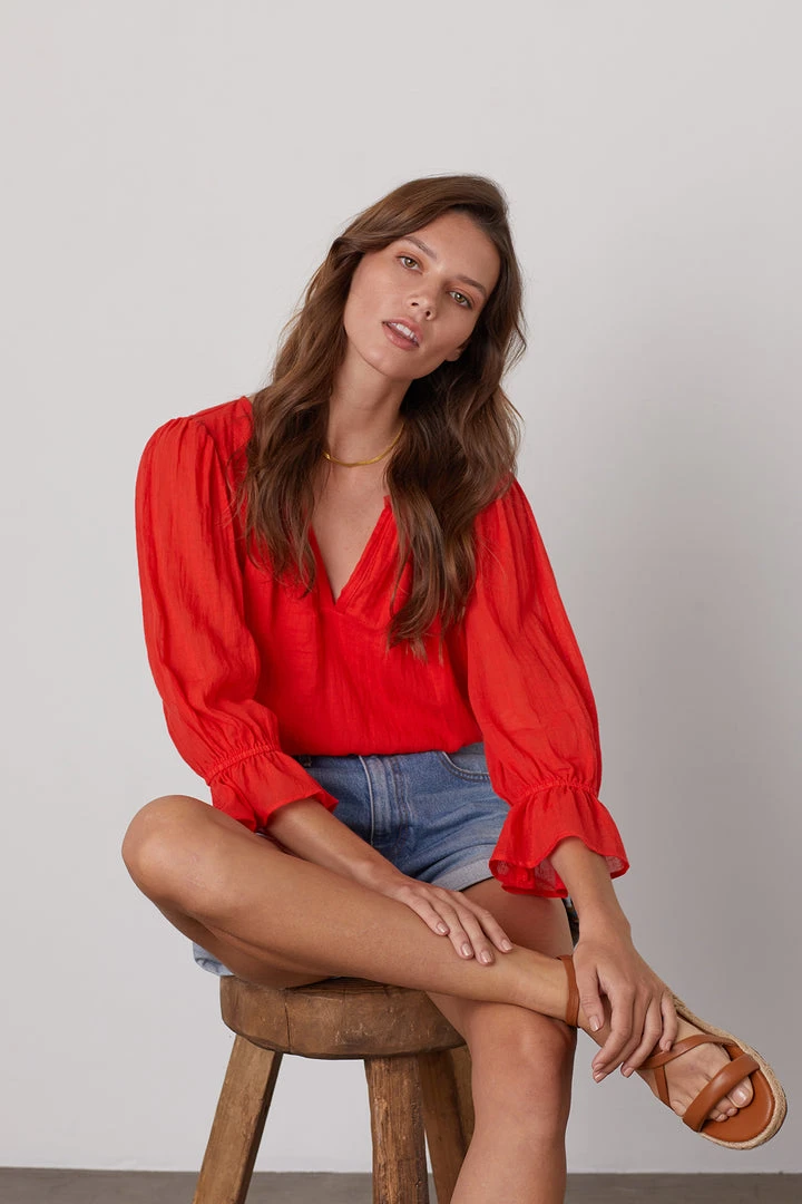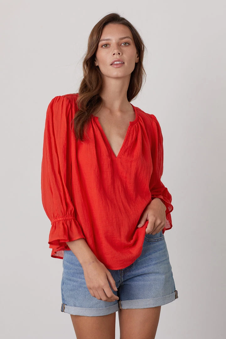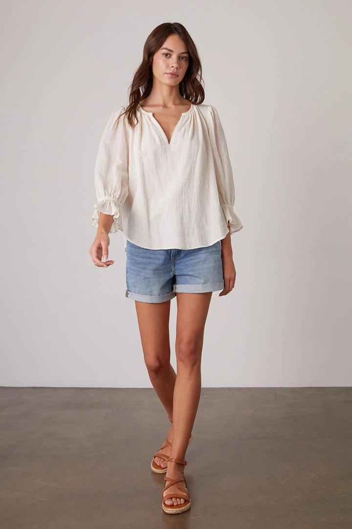 A lightweight cotton gauze woven is a summer staple in the classic peasant-blouse silhouette that’s laid-back and endlessly versatile.