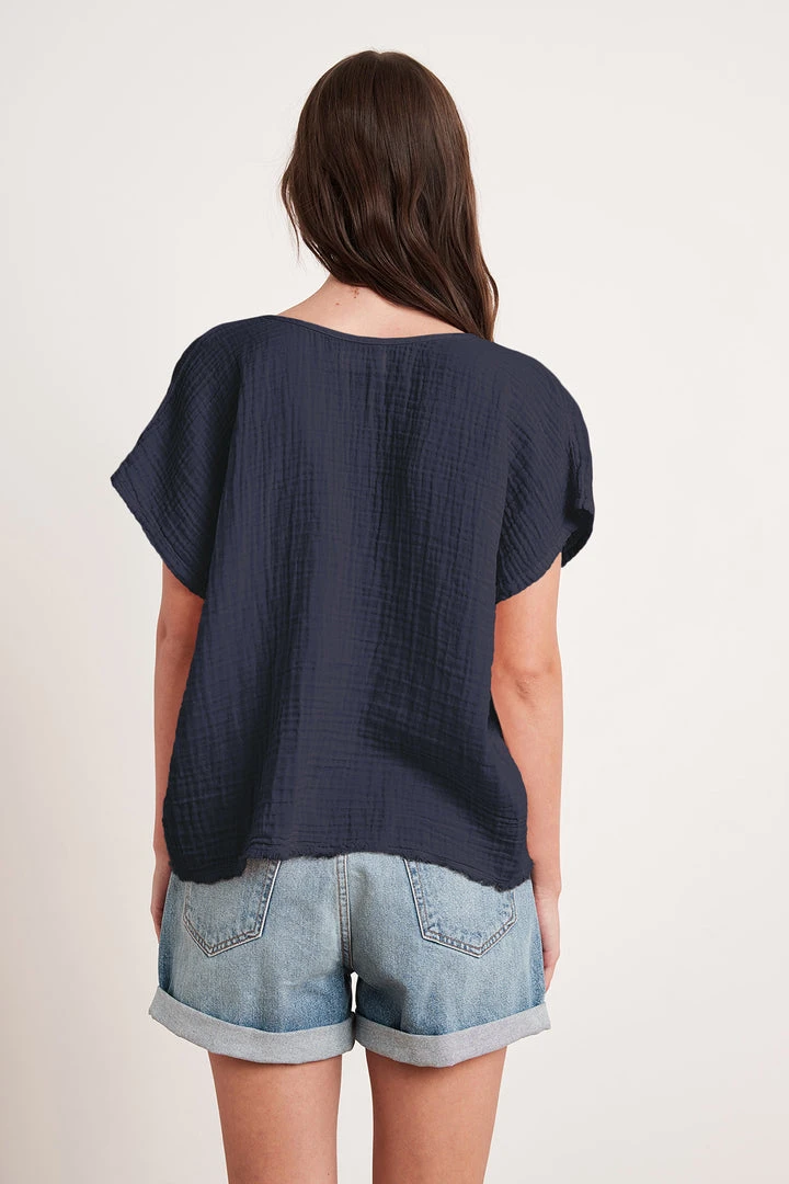 For those days when you want a tee but a little dressier. This cotton gauze top features a gorgeous natural texture and raw hem detail. Relaxed, breezy and effortless.