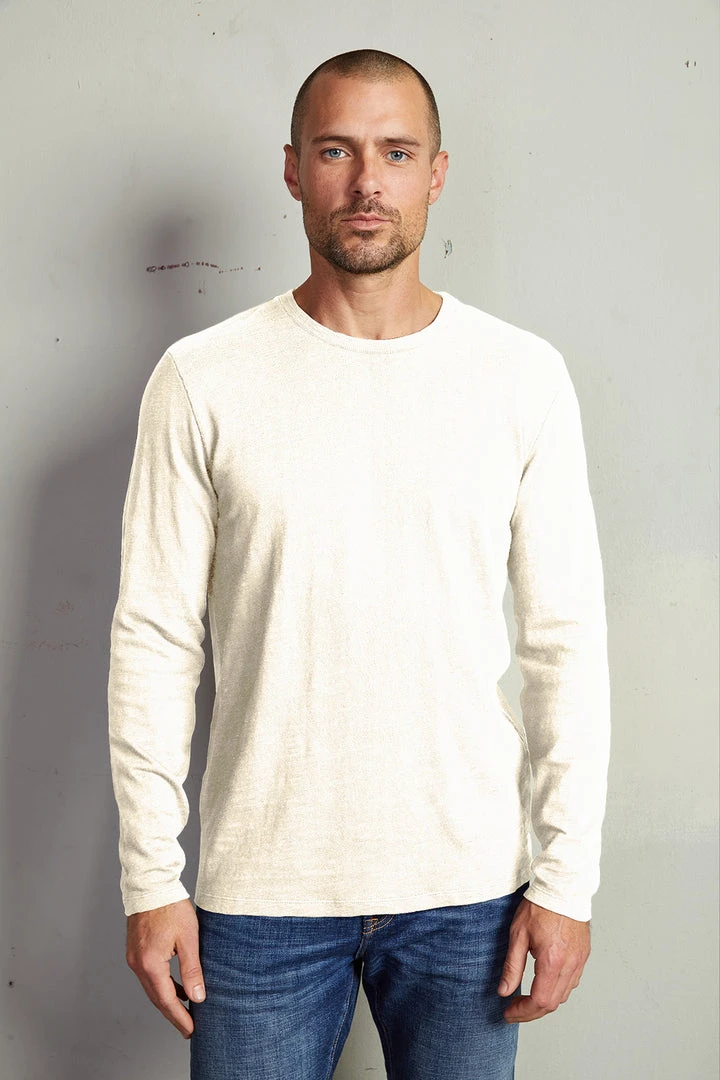 Understated and streamlined, this long sleeve tee has slight scoop at the hemline. Our signature slub delivers a soft, heathered texture, as always.