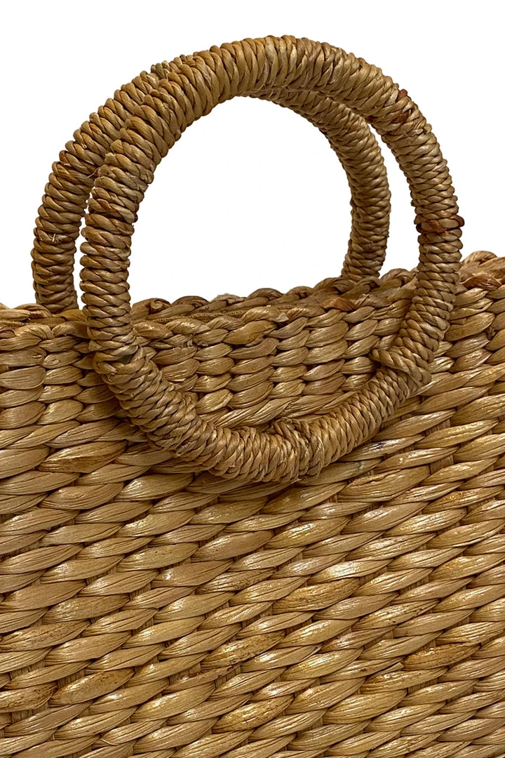 Perfect for keys, wallet and sunglasses, this tiny tote features a tightly woven body and sturdy, circular handles that can easily loop over your wrist. A chic essential.