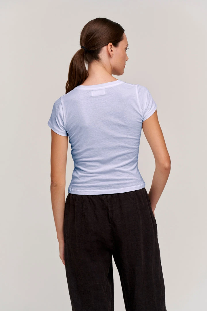A sartorial throwback to where it all began, in the best possible way. Crafted from our whisper cotton knit, which has a hint of sheer, this baby tee is a warm-weather special. Style it solo or with a contrast color on top.