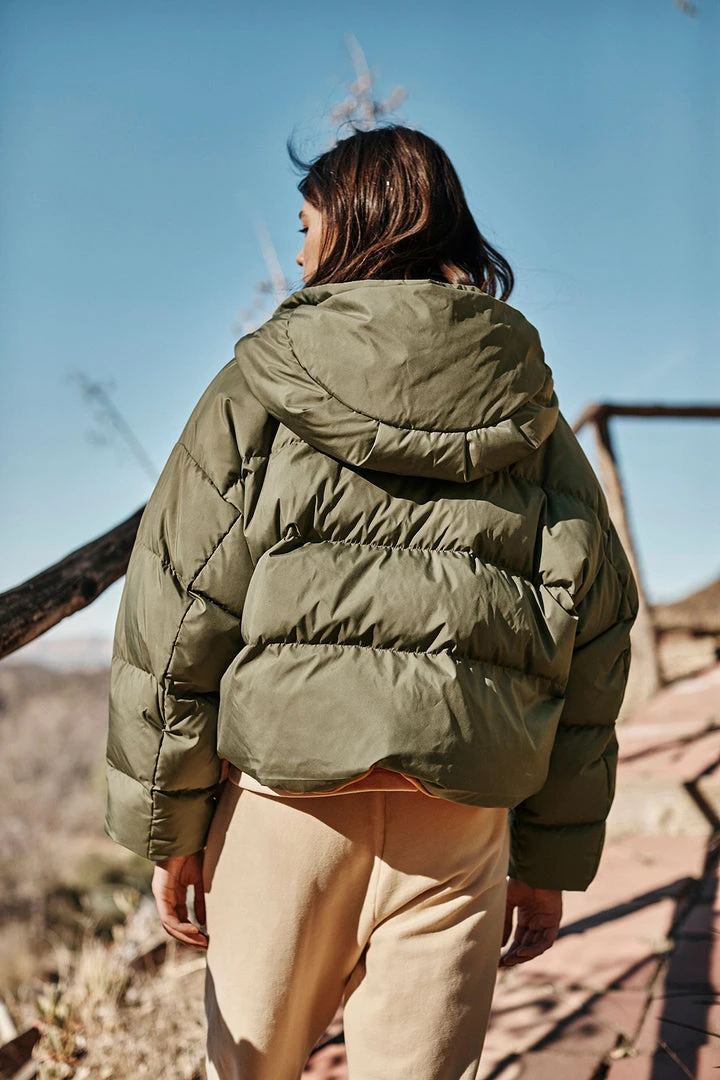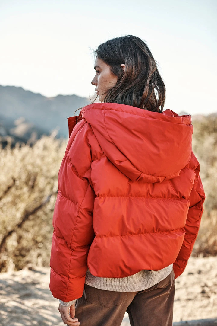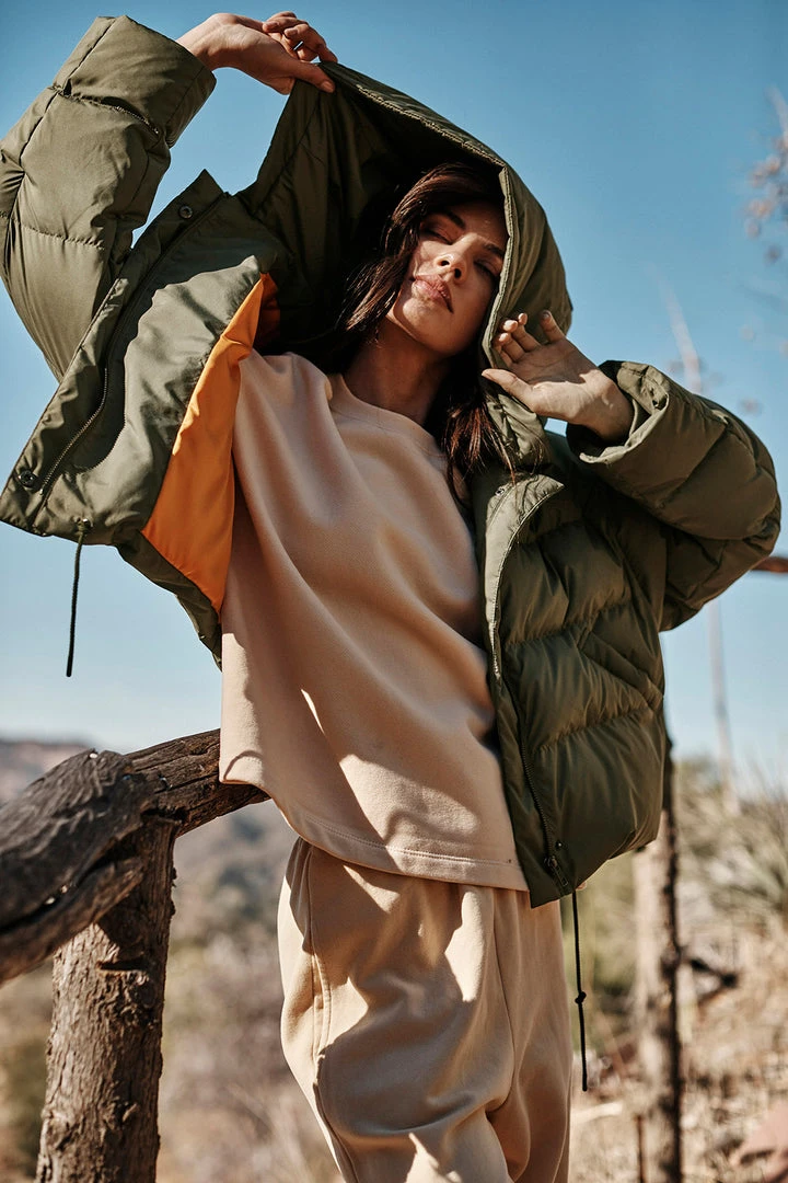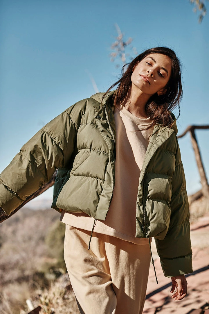 Cool, cropped and cozy. Our puffer hits at the waist with a drawstring that you can cinch for extra warmth. Relaxed fit so it can easily slip over a winter knit.