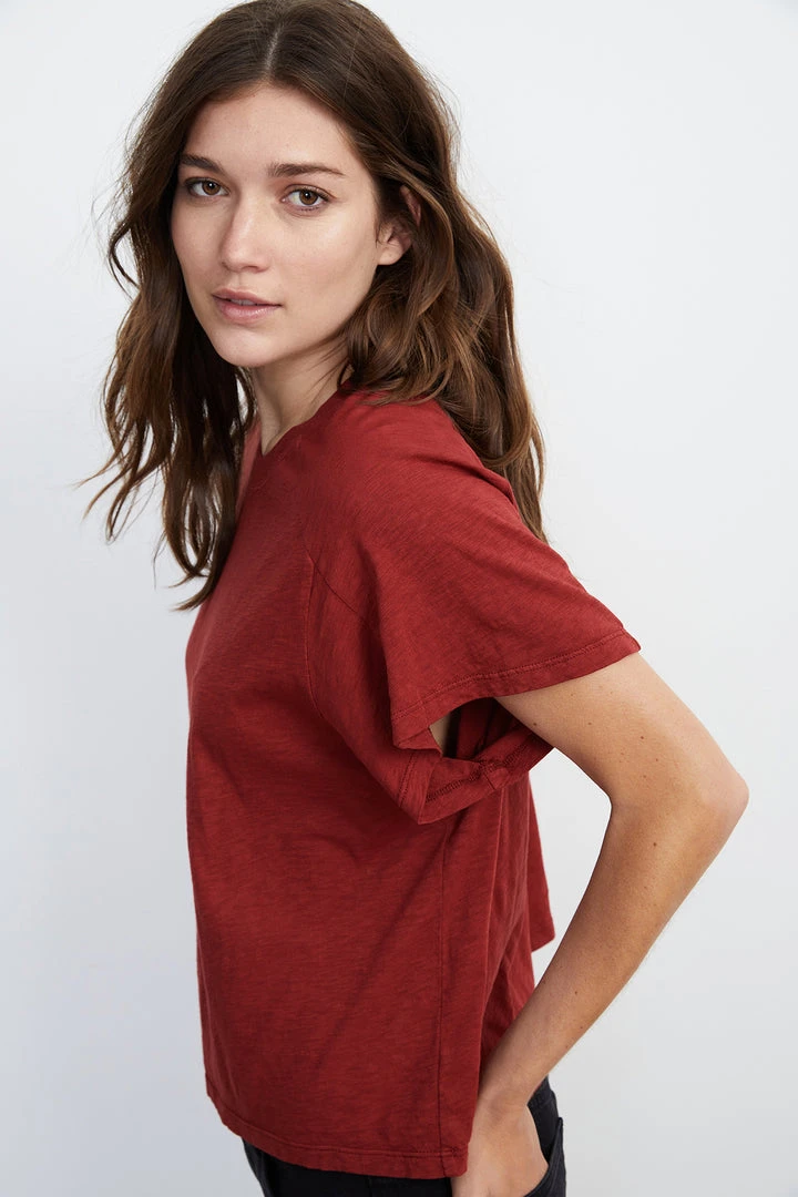 Designed to be a relaxed fit that is also slightly cropped. The shoulder seams give this signature cotton slub an elevated, yet minimal vibe.
