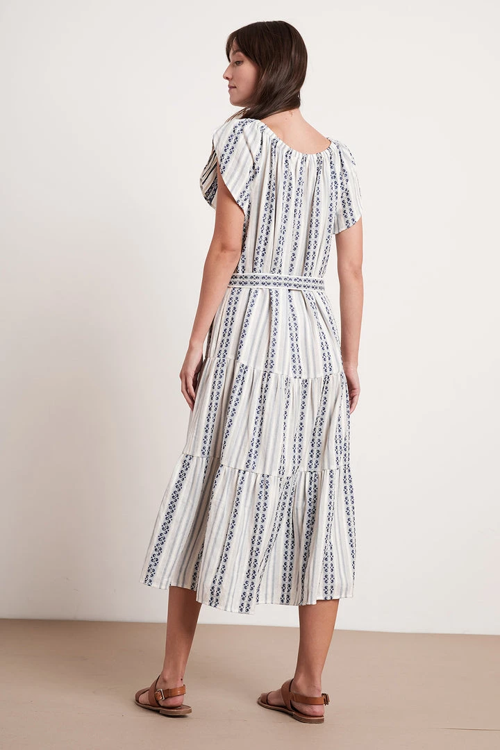 Inspired by our favorite vacation spot in Greece, this pop-on frock is crafted from a classic jacquard with a tiered skirt and split tulip sleeves. See you by the sea.