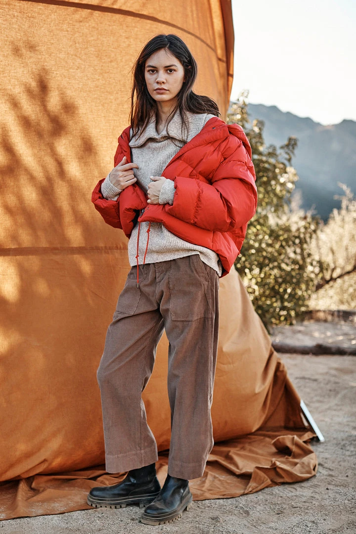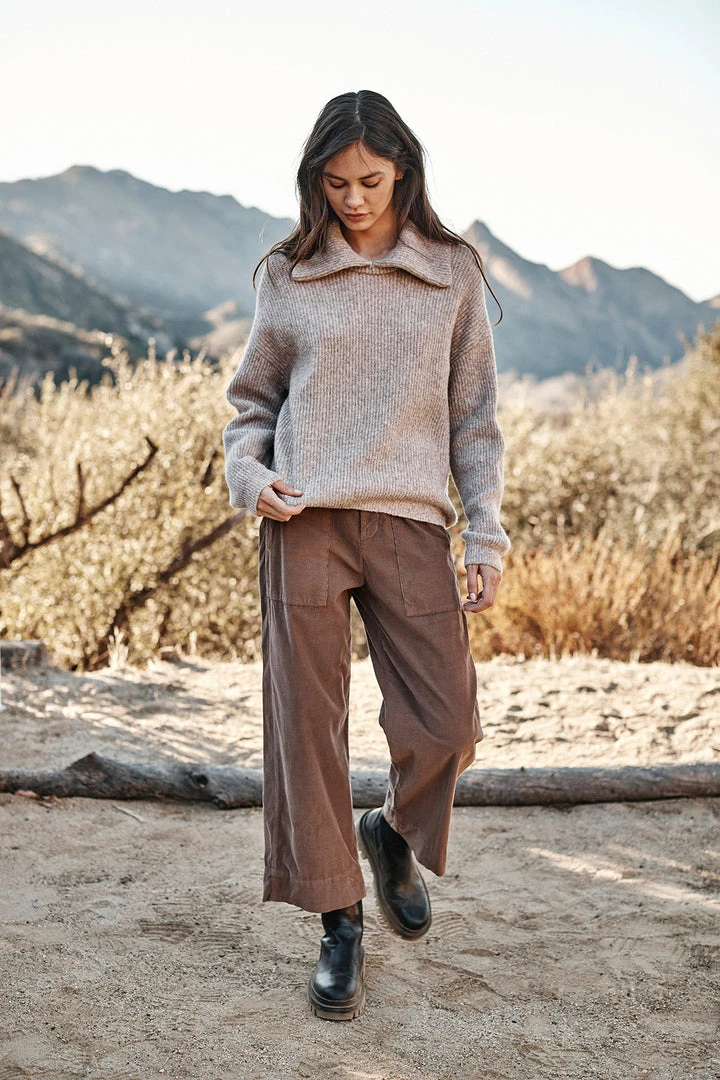 Featuring a pincord corduroy (this is the skinniest, least bulky type) these casual trousers are fab. With a cropped, wide leg and utility details like patch pockets on the front and rear, these bottoms have a slightly higher rise that hits at the natural waist. A flattering silhouette that is equally chic.