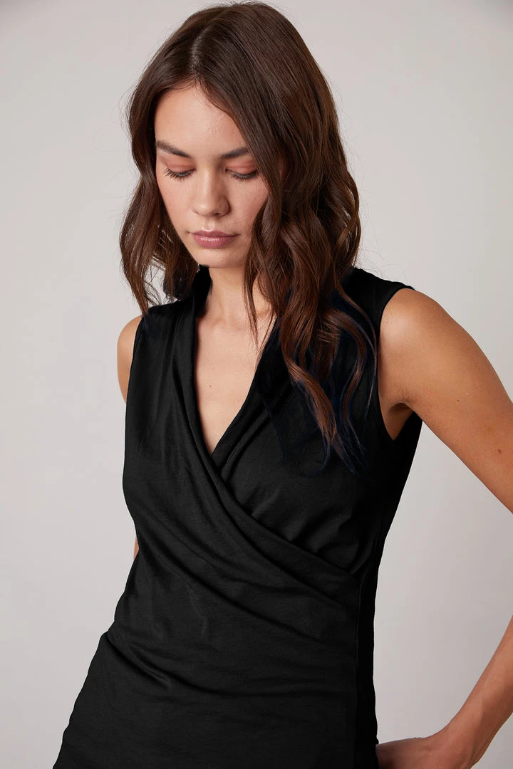 Velvet By Graham & Spencer Womens ADELISE GAUZY WHISPER FITTED WRAP TANK