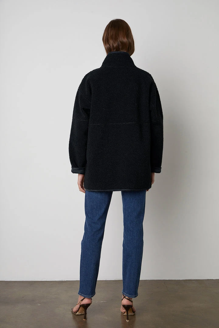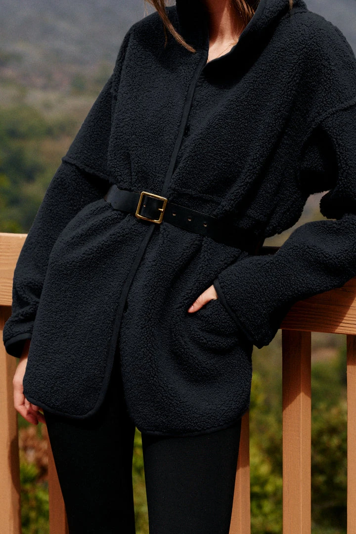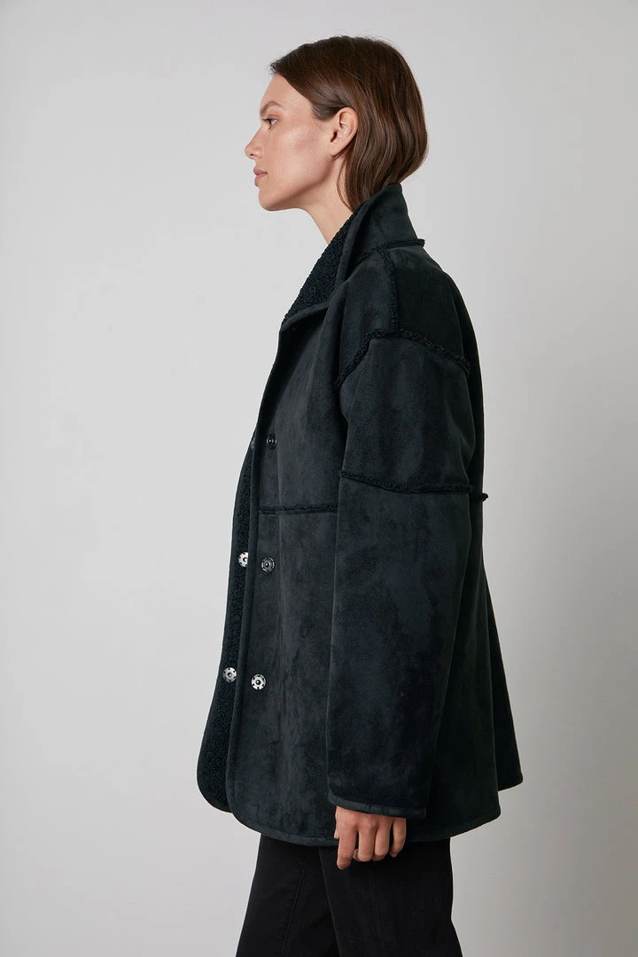 Up your coat game with this reversible beauty. One side is an eco-chic faux sherpa, while the other side is a faux fur. With a relaxed silhouette that’s perfect for layering over a chunky knit, it features slash pockets, popper buttons and a cool stand up collar.