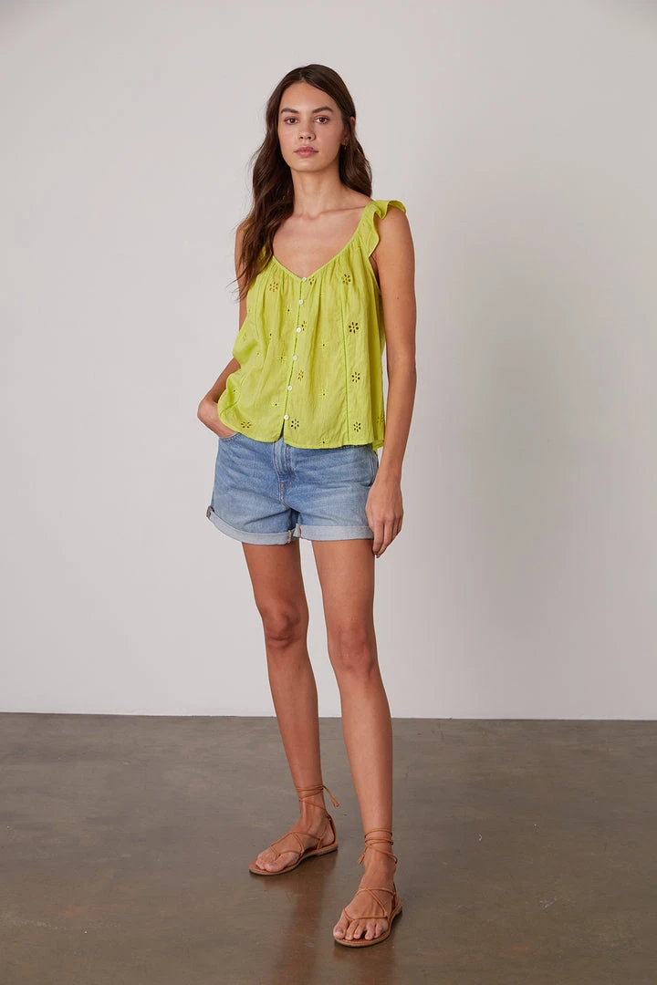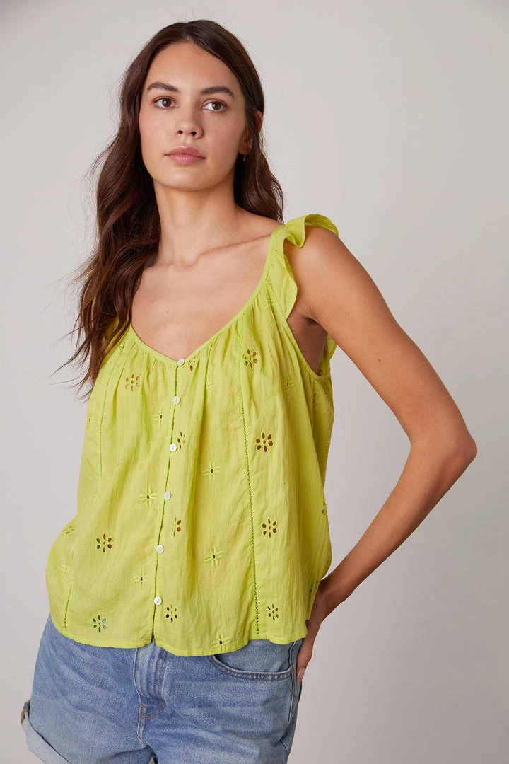 SKU: top-7189450227905 Categories: Shirts & Blouses, Summer 2022 Collection, Tanks & Camis, Tees & Tops, The Latest, Womens Tags: $100 - $150, COCO05, COTTON EYELET, Discount Applicable, Size-chart-womens, Tanks & Camis, Tees & Tops, Women