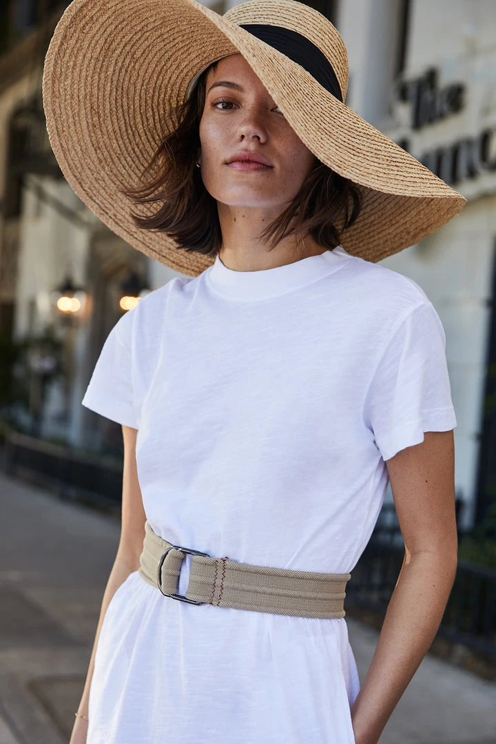 Top it off. Crafted from a natural woven straw, this hat features a wide brim measuring almost six and a half inches so offering ample sun protection for your face. There’s also a romantic black ribbon that flows down the back. Made for now, later and leisurely outdoor afternoons.