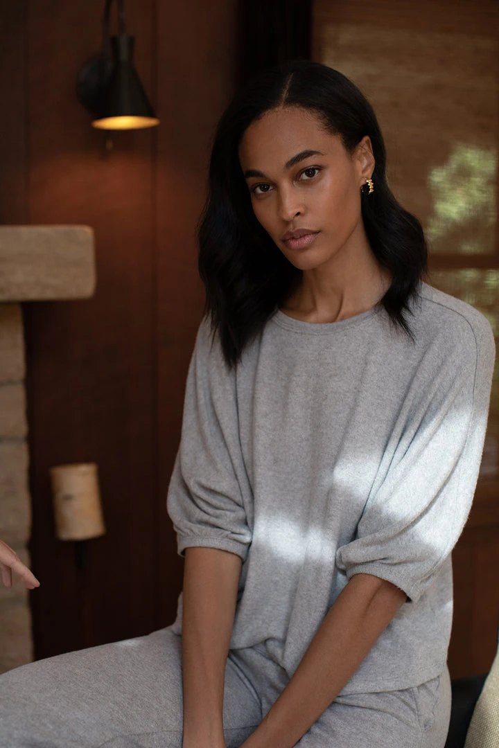 With a medium-weight soft knit that lives between a tee and a sweatshirt, this top features a cropped sleeve with an elastic cuff. The shape is kept minimal with strategic seaming and a relaxed fit.