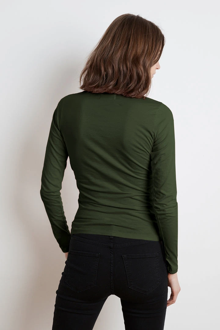 With her clean lines and classic shape, Meri defies seasons and trends and is the perfect staple piece. Crafted in lightweight gauzy whisper with her cross over v-neck, she provides a lovely modern, romantic look.