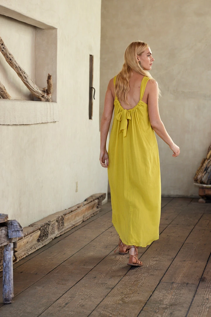 A maxi to dress up or down. Crafted from our softly textured cotton gauze, this scooped-hem dress makes a dramatic statement in its simplicity. The cinch tie at the rear allows you to adjust the straps.