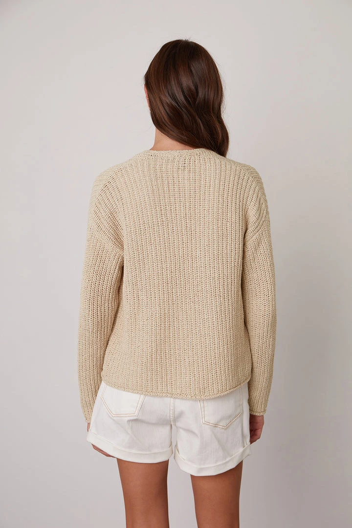 Crafted from cotton tape yarn, which gives a slightly looser knit that keeps its shape over time and also has a beautiful, organic variation in the stitch work. Slightly cropped, it’s the perfect summer cardigan.