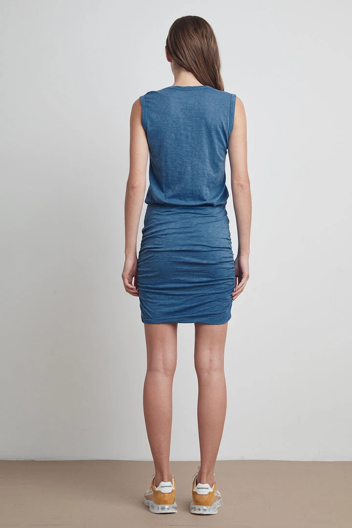 Crafted from our signature cotton slub, this easy frock has a scoop neckline, and shirred seams on the sides.