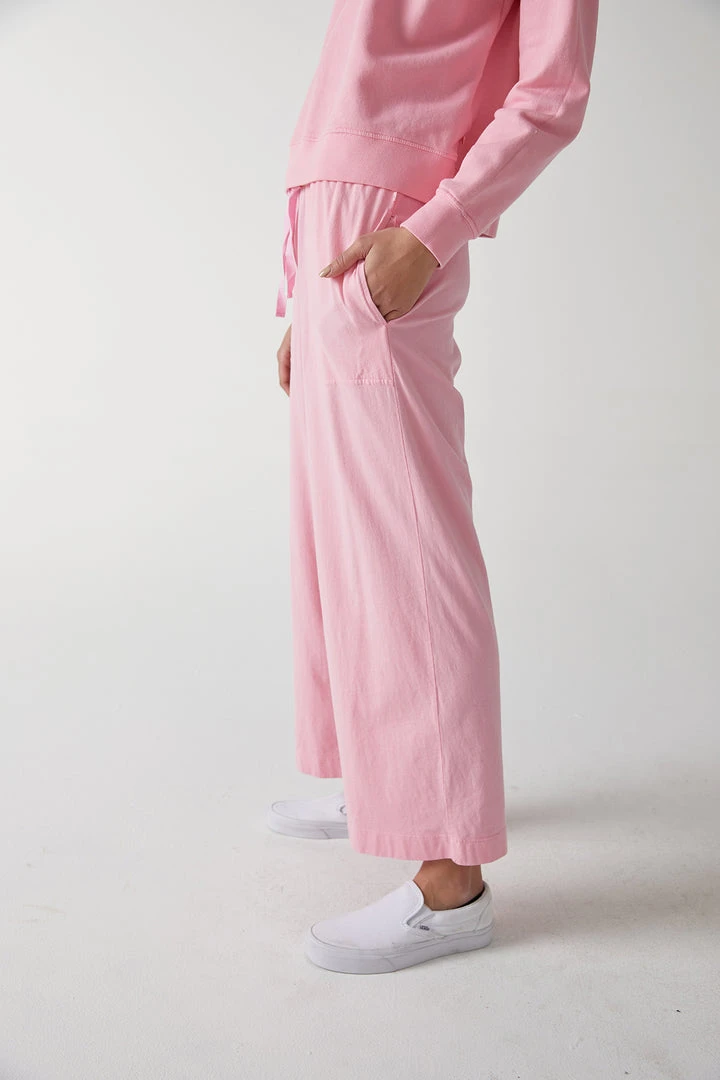 Every closet needs a superior, yet casual pant. Crafted from an organic cotton and with a straight leg these pop-on bottoms feature an elastic waist and slash pockets. Fits like an elevated jogger.