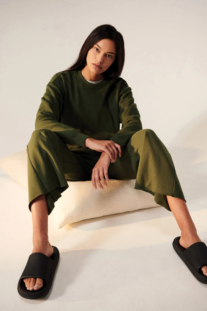 We can’t get enough of this relaxed-fit jogger bottom. Crafted from a soft organic cotton with a fleecy inside for extra coziness, these sit low-slung on the hips with a flared leg and a raw-edge hem so you can crop to your preferred length.