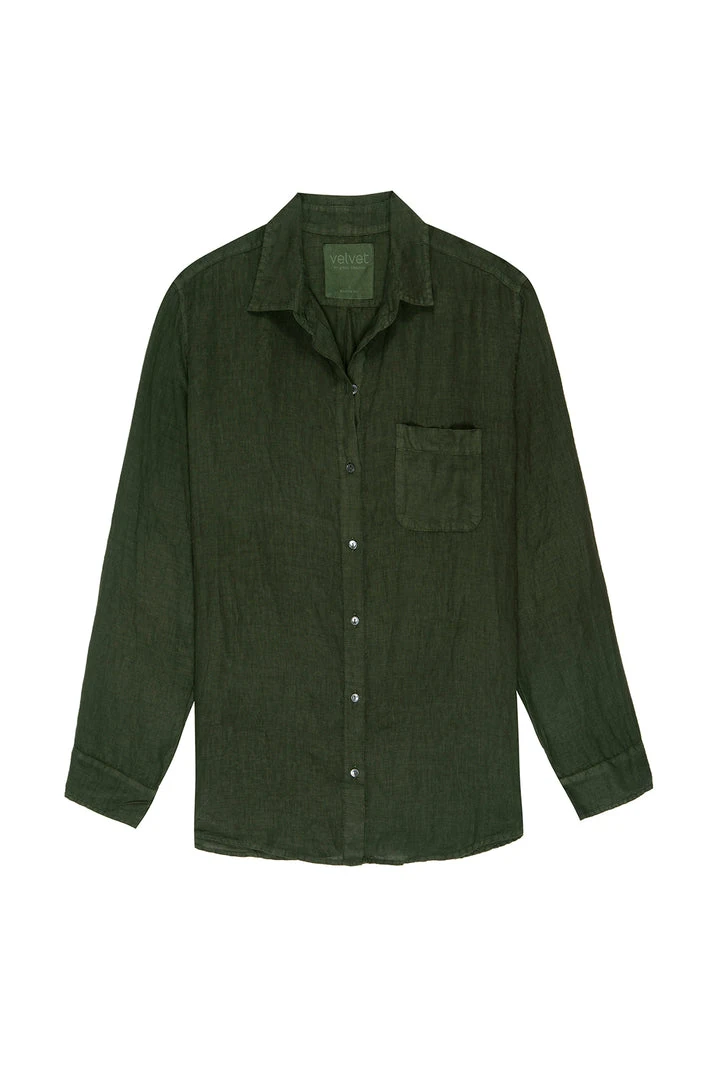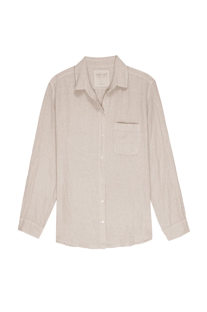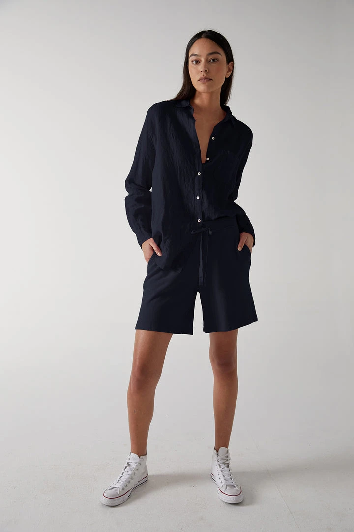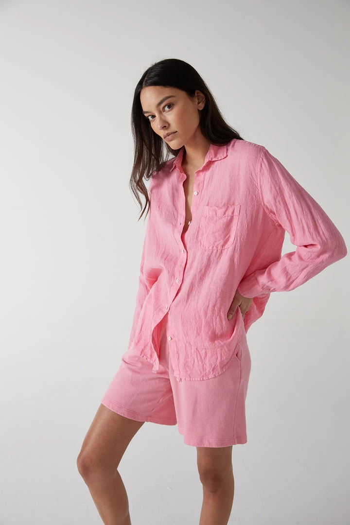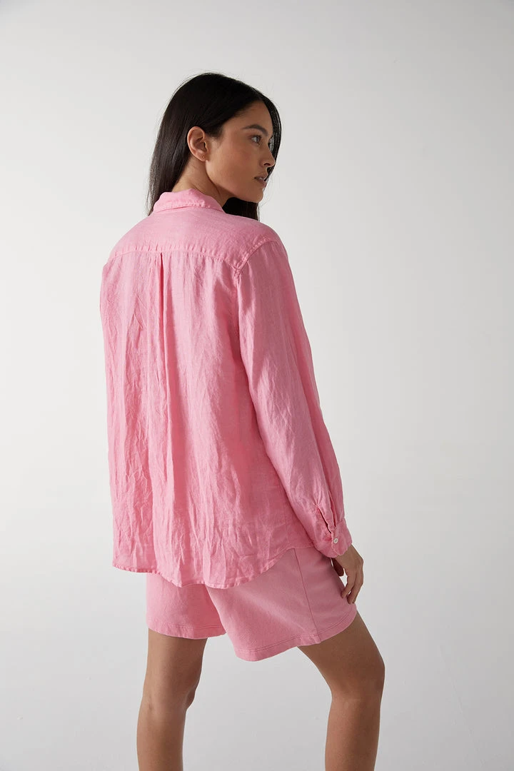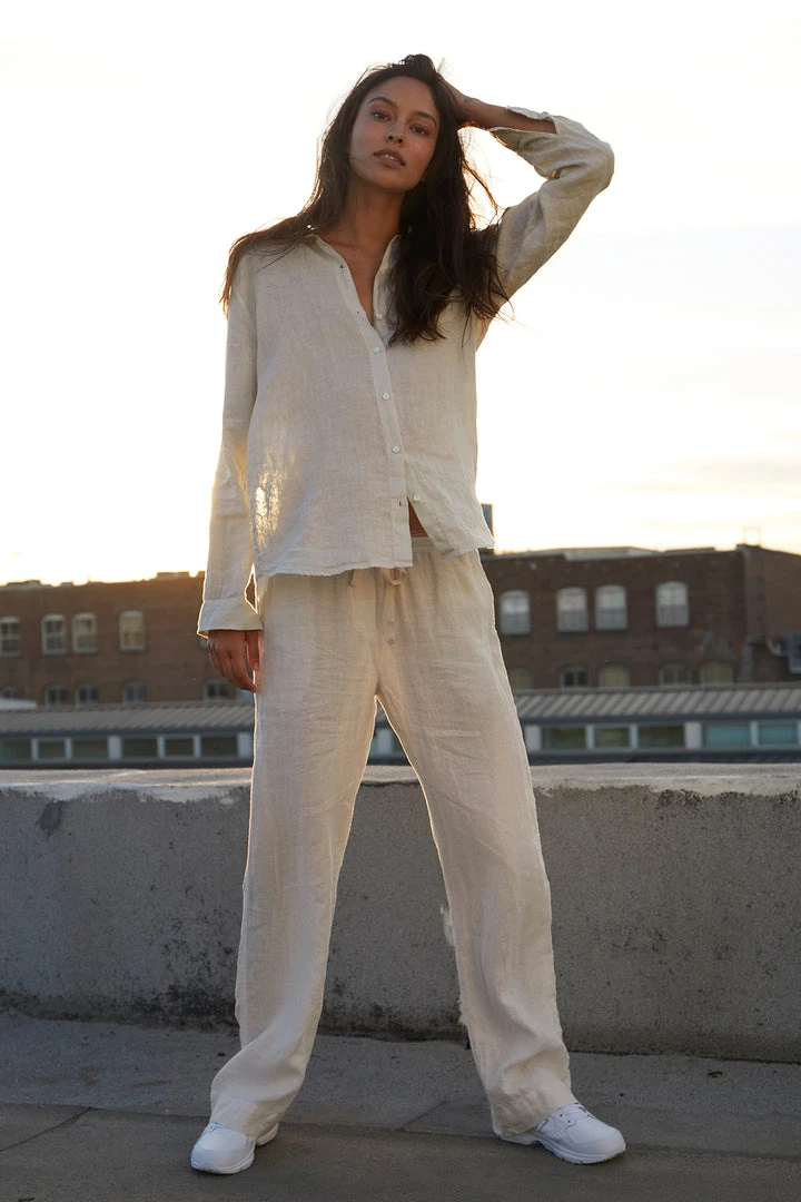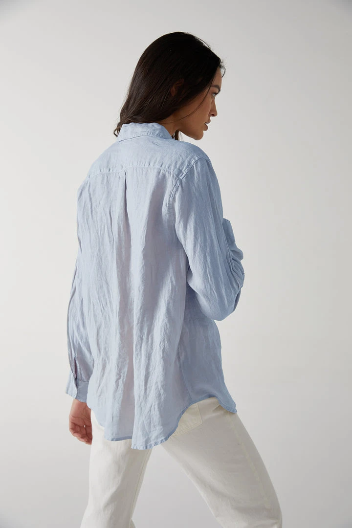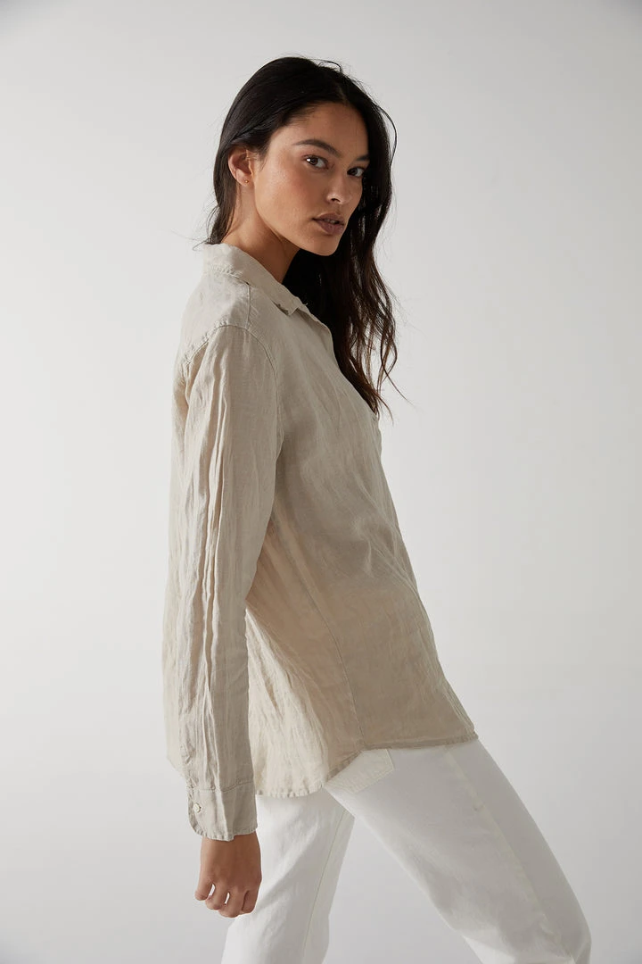 Considered one of the ultimate essentials, this linen button up has a slightly relaxed silhouette that lends an added ease to the styling. The scooped hemline looks equally chic tucked or left loose.