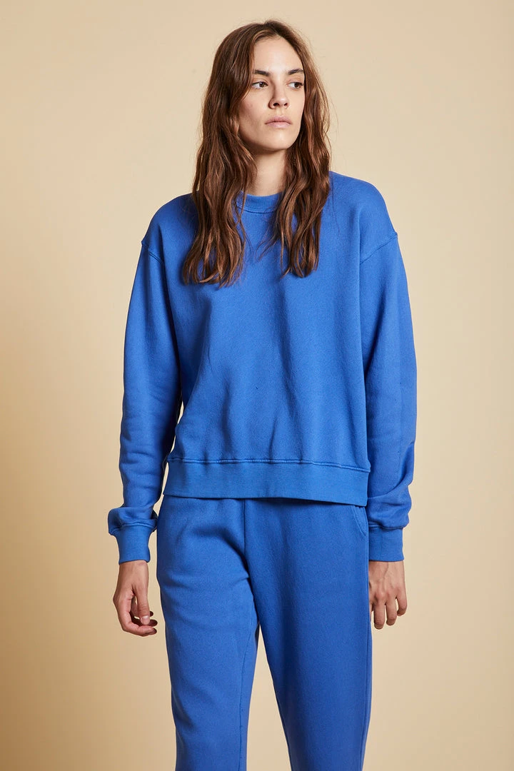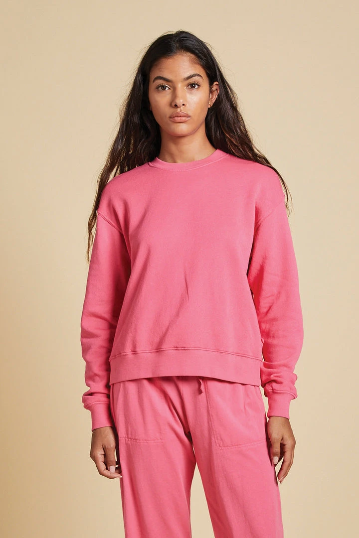 Crafted from an organic fleece that’s cozy on the inside and with thoughtful details like exaggerated seams, a dropped shoulder and slight crop. Great slouch but zero bulk, which is what makes it amazing.
